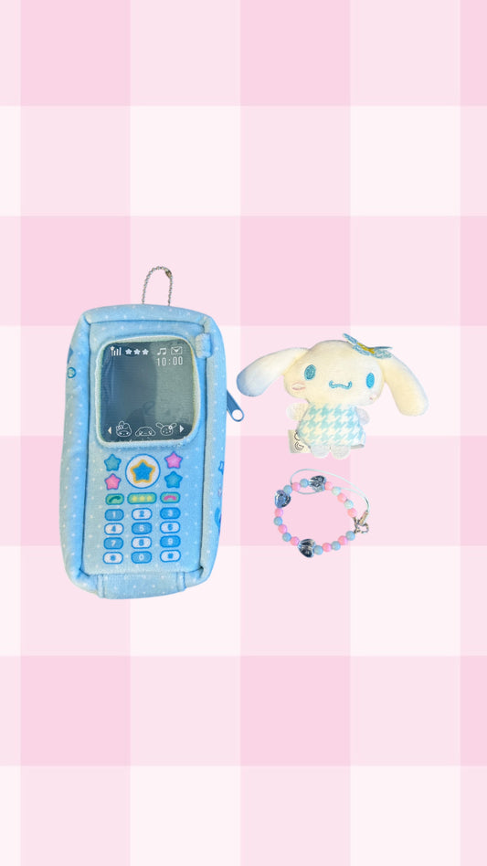 SANRIO ORIGINAL CINNAMOROLL CELLPHONE PLUSH WITH MASCOT CHARM
