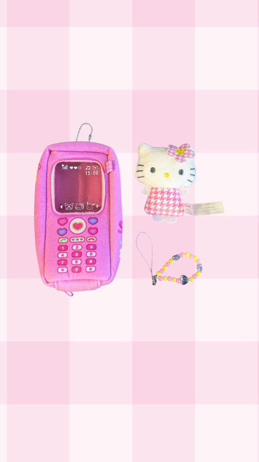 SANRIO ORIGINAL HELLO KITTY CELLPHONE PLUSH WITH MASCOT CHARM